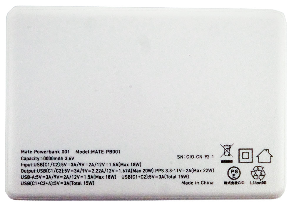 デジタル残量計を搭載した20WPD急速充電に対応した10000mAhバッテリー。