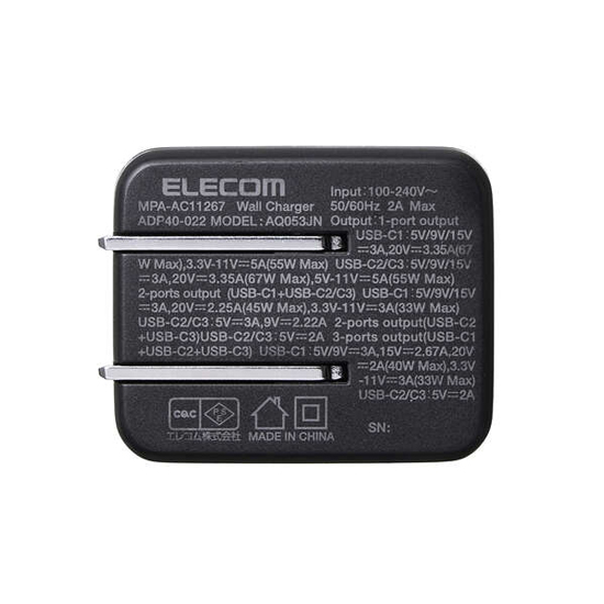 出力 USB-C1/2/3:5・9・15V/3A、20V/3.35A/USB-C1 PPS:3.3〜11V/5A/USB-C2/3 PPS:5〜11V/5A