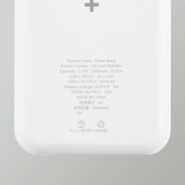 マグネット付きワイヤレス充電対応モバイルバッテリー(5000mAh)