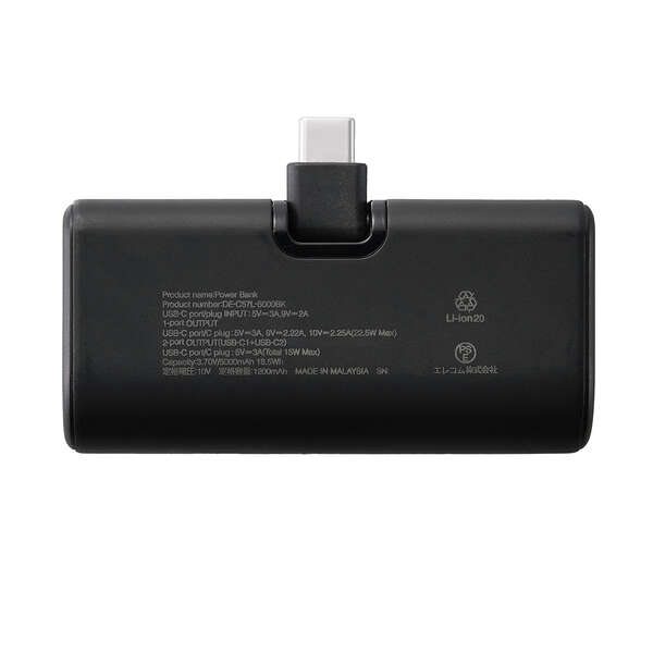折り畳み式直挿しモバイルバッテリー(USB Type-Cプラグ/5000mAh)
