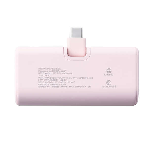 折り畳み式直挿しモバイルバッテリー(USB Type-Cプラグ/5000mAh)