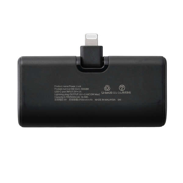折り畳み式直挿しモバイルバッテリー(Lightningプラグ/5000mAh)