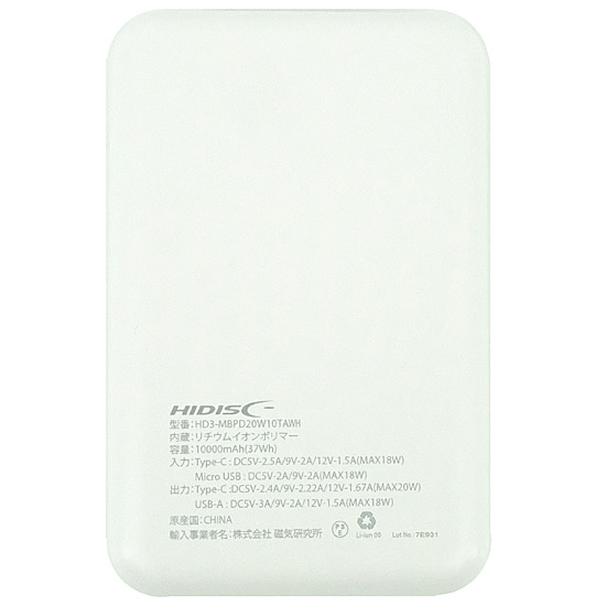 HD3-MBPD20W10TAWH [ホワイト]