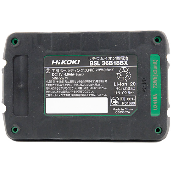 電圧・容量:36V・4.0Ah / 18V・8.0Ah(電池装着で自動切替)