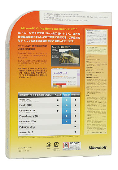Microsoft (マイクロソフト) オフィス ホーム アンド ビジネス 2010 アップグレード優待版 です。