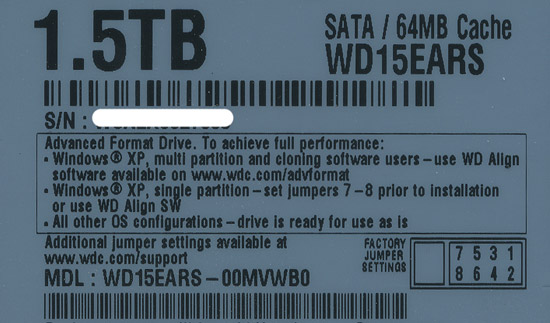1.5 TB、64 MB キャッシュ、SATA 3 Gb/s