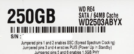 3.5インチ内蔵HDD 250GB Serial-ATA/3.0Gb 7200rpm 64MB WD2503ABYX