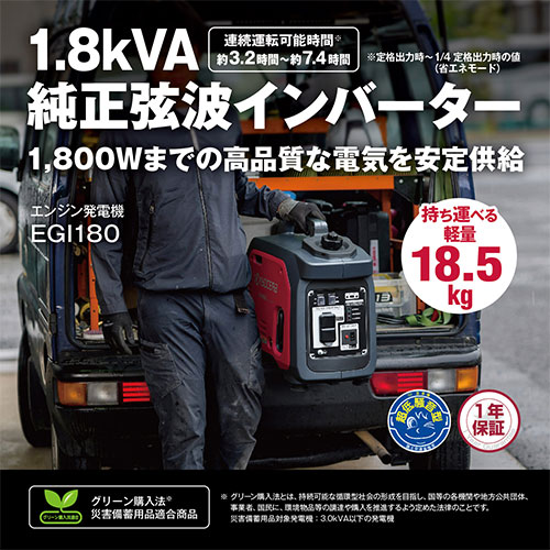 グリーン購入法に適合しているインバーター制御仕様のエンジン発電機です。