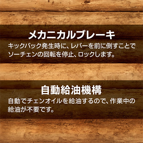 軽い力でエンジンがスタートするKスタート付きのチェーンソーです。