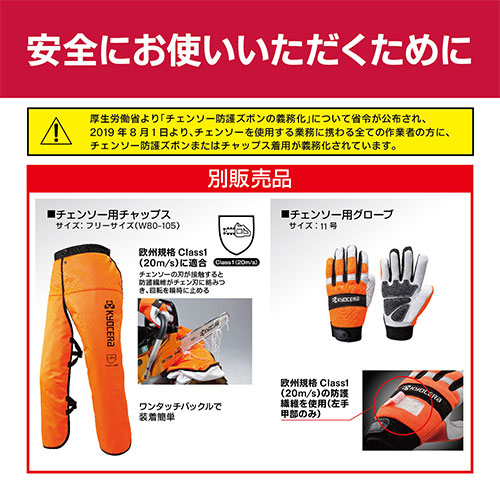 業務で伐木作業などをする場合はチェンソー用下肢保護衣(保護ズボンなど)の着用が義務付けられています。