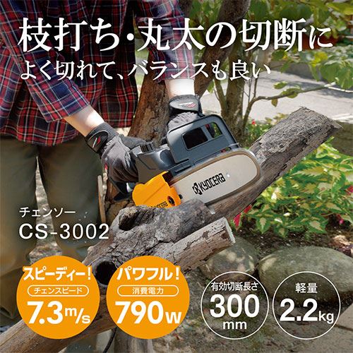 ●付属品:ガイドバー(本体取付)・ソーチェン(本体取付)・チェンカバー(本体取付)・六角棒レンチ5mm(本体収納)・チェンオイル(50ml)。