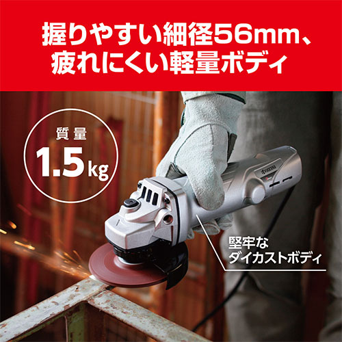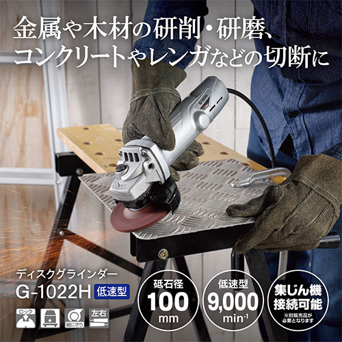 溶接面の研削・サビ取り、鉄・青銅等のバリ取り・サビ取り、コンクリート・レンガ等の切断作業。