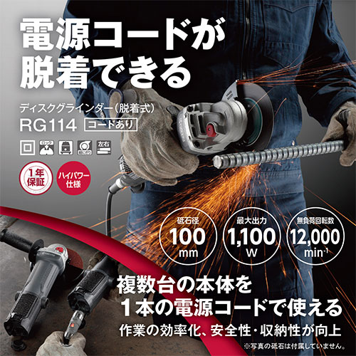 複数台の本体を1本の電源コードで使える脱着式により、作業の効率化と安全を実現します。