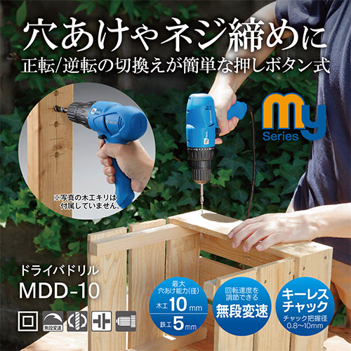 ビットの着脱が容易にできるキーレスチャックを採用した組立家具や工作の穴あけ・ネジ締めに適したドライバードリルです。