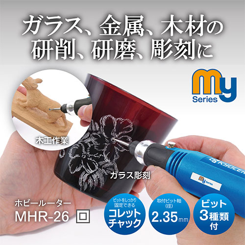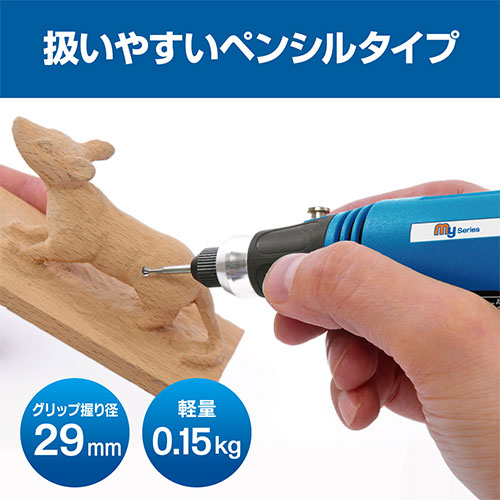 ガラス、金属、木材の研削、研磨、彫刻に適した扱いやすいペンシルタイプのホビールーターです。