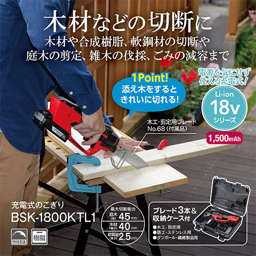 ●付属品:電池パック(B-1815LA)×1個・充電器(UBC-1803L)×1個・レシプロソーブレード(No.68、剪定用、ブレードカバー付)×1本・レシプロソーブレード(No.79、鉄工・ステンレス用、ブレードカバー付)×1本・レシプロソーブレード(No.94、繊維製品・段ボール用、ブレードカバー付)×1本・レシプロソー刃用ブレードホルダ(本体取付、ツールレス、六角穴付ボルト付)×1個・六角棒レンチ(本体収納、3mm)×1本・キャリングケース×1個。