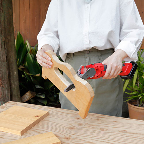 10.8V電池パックを採用し、コードレス化を実現しているので電源設備のない屋外でも刃物の研磨が可能です。