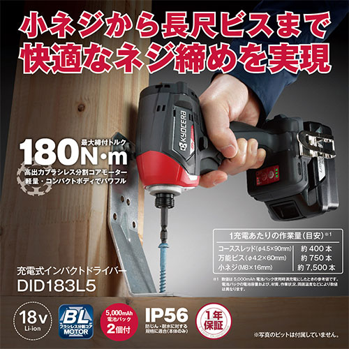 ●ネジ締め能力:(小ネジ)M4〜M8・(普通ボルト)M5〜M16・(高力ボルト)M5〜M14。