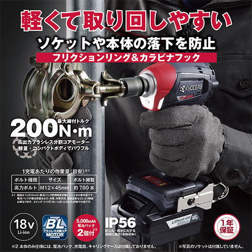 ●最大締付トルク:(強)200N・m・(中)140N・m・(弱)100N・m。