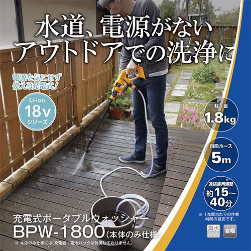 水道、電源が無い場所でも洗浄できます。