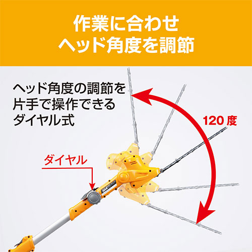 持ち重り感と使い勝手を兼ね備えた18Vクラス最軽量のポールヘッジトリマです(充電器・電池パックは別売です)。