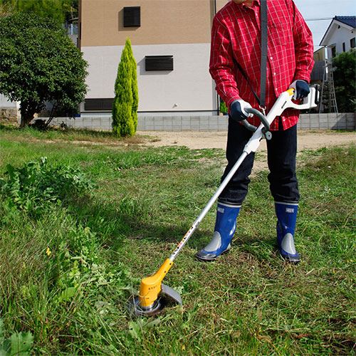 雑草刈りは金属8枚刃で効率よく、キワ刈りはあんぜんローターを使い安全な作業ができます。