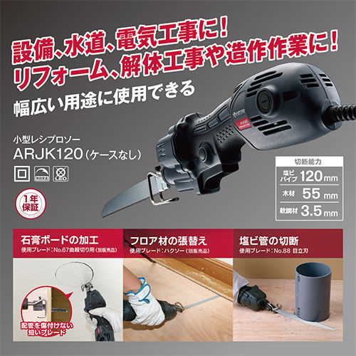 ●切断能力:(塩ビパイプ)120mm・(木材)55mm・(軟鋼材)3.5mm。