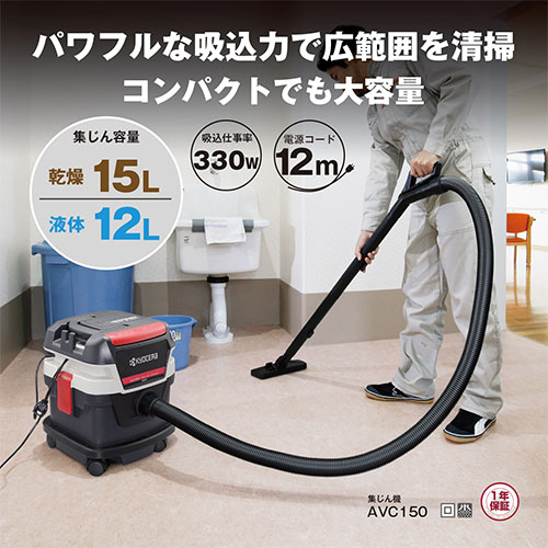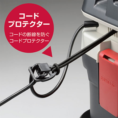広範囲な作業に十分なコード長さ12mでコードプロテクター付で断線しにくい軽量・コンパクトな乾湿両用仕様の集じん機です。