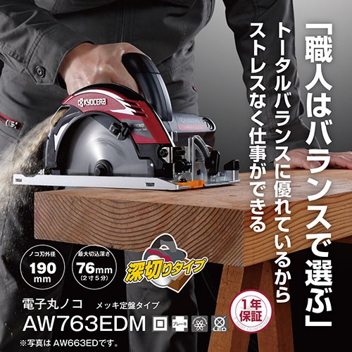 メッキ定盤採用で手に持った時のバランスが良く安定した切断ができる最大切込深さ76mmの電子丸ノコです(チップソーは別売りです)。