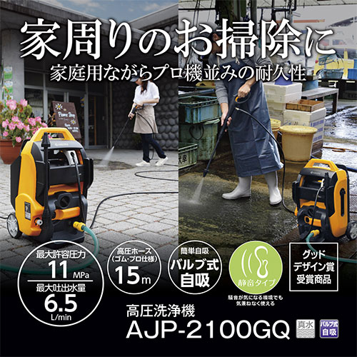 水冷式モーター採用で家庭用ながら静音性とプロ機並みの耐久性を兼ね備え、エア抜きが要らないバルブ式自吸で溜水も利用できる高圧洗浄機です。