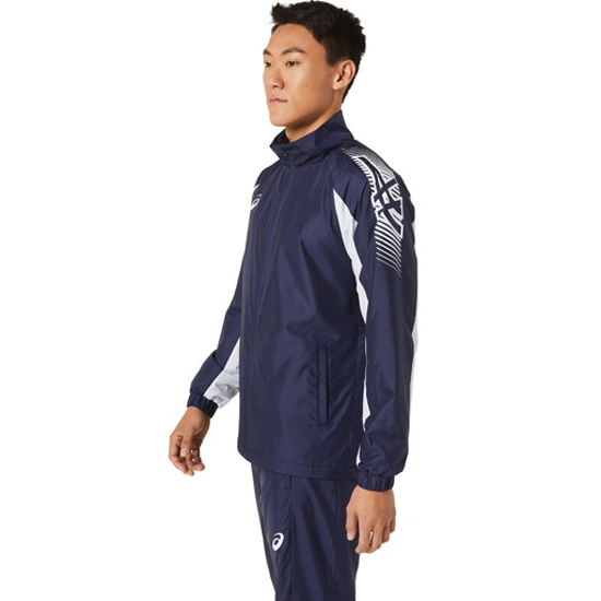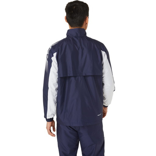 TEAM COLLECTIONシリーズ。「背中を温め、全身を暖かく」、バックウオーム搭載アイテムで、優れた保温性を追求した裏トリコットブレーカージャケット。背ベンチレーション仕様と再帰反射付きディテール付き。