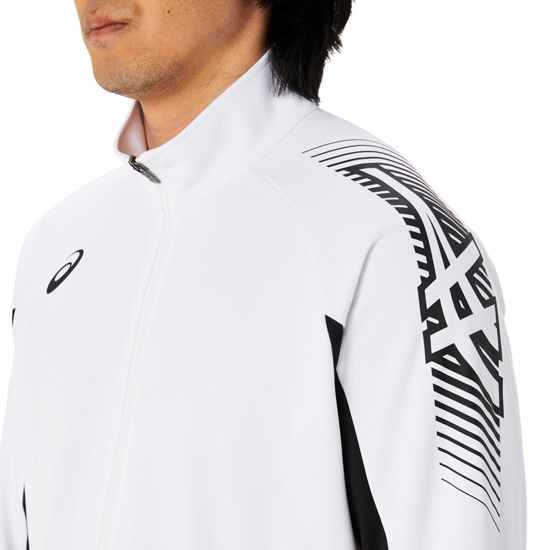 やわらかな着心地と左袖部分にアシックスストライプのプリント柄が入った