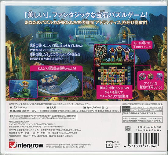 資源を集めてアトランティスを発展させよう!! 絵柄を3つそろえると消えるルールのすぐに遊べるパズルゲーム。 パズルをクリアしていくとアトランティスに建物を建てていくことができます。 クリスタルパネルを使っての多彩なアイテムによって難関ステージもクリア可能。 挑戦しがいのあるトロフィーも多数あります。