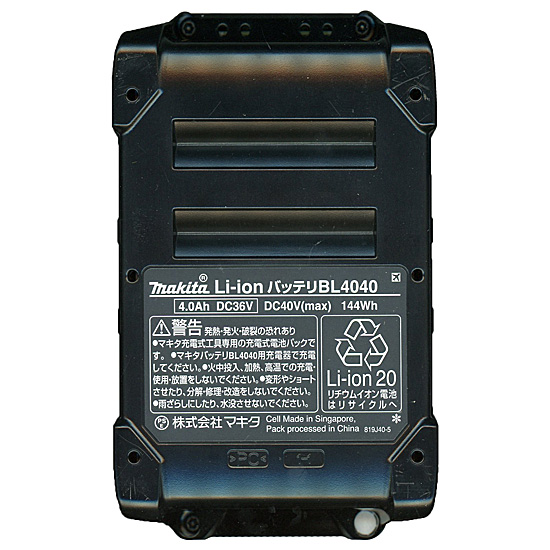直流36V(40Vmax)、スライド式Li-ionバッテリ仕様。バッテリ・充電器付き