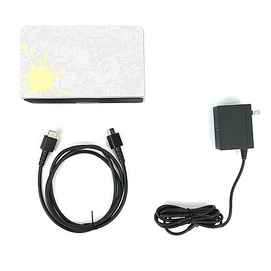 『スプラトゥーン3』のオリジナルデザインをあしらったNintendo Switch(有機ELモデル)本体、Joy-Con(L)/(R)、Joy-Conストラップ、ドック。