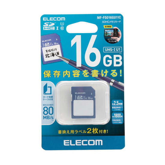 撮影日時や保存内容などを書き込める、フリースペースが大きいラベルを採用したSDHCメモリカードです。貼り替え用のラベルも同梱。読み込み最大80MB/sで画像や動画の表示も速いのが特長。管理や持ち運びに便利なSDカードケース付きです。