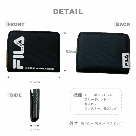 【新品】FILA FILAポリプリント ラウンドファスナー札入れ FIMS-0356 ブラック/ホワイト