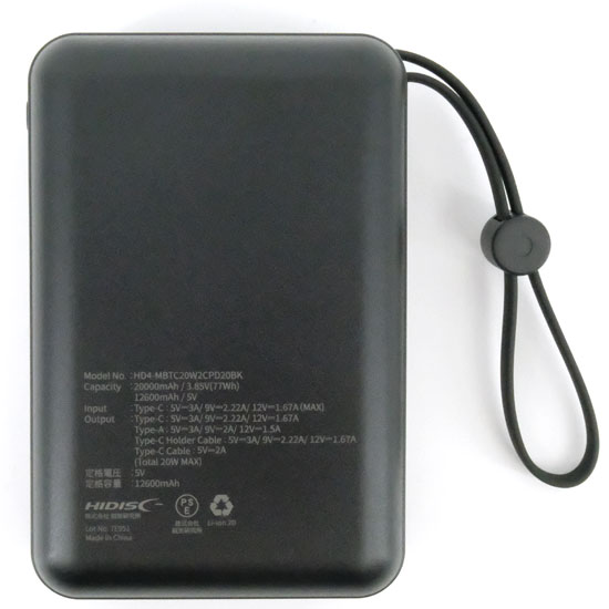 出力 USB-Cポート/ホルダーケーブル:5V=3A/9V=2.22A/12V=1.67A/USB-A:5V=3A/9V=2A/12V=1.5A/(最大20W)