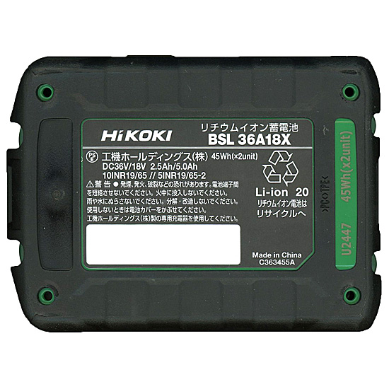 バッテリー電圧・容量 36V 2.5Ah/18V 5Ah×2個