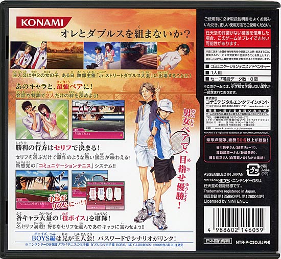 本作では妹を、2009年3月26日発売「DS/テニスの王子様 ダブルスの王子様 BOYS BE GLORIOUS!」では兄を操作してストーリーを進めます。
