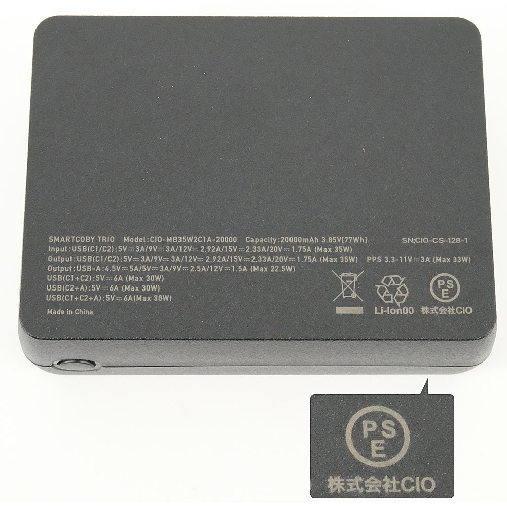 出力 USB(C1/C2):5・9V=3A/12V=2.92A/15V=2.33A/20V=1.75A(35W Max)/USB-A:4.5V=5A/5V=3A/9V=2.5A/12V=1.5A