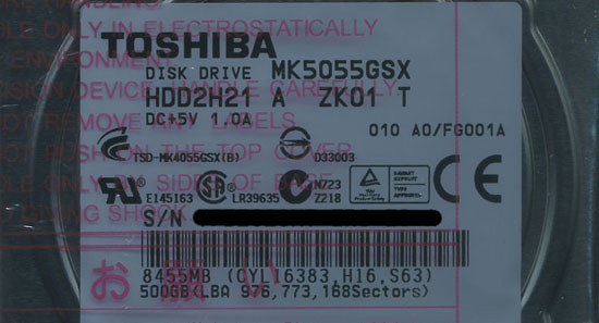 TOSHIBA(東芝) ノート用HDD 2.5inch★MK5055GSX★500GB★未開封