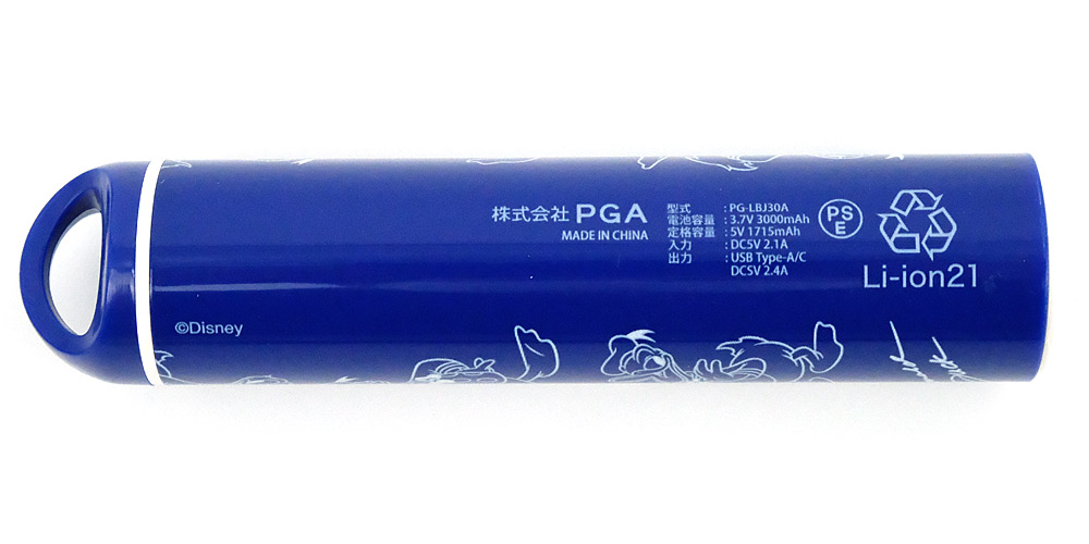 「PG-DLBJ30A02DND」は、ディズニーキャラクターデザインの軽量コンパクトでポーチにも収まるスティック型モバイルバッテリー 3000mAhです。USB type-A/Type-Cポートでの出力対応・2台同時充電も可能です。また、スマートフォン本体を充電しながらモバイルバッテリーも充電できるパススルー充電に対応しています。お手持ちのストラップを付けて落下を防止できる便利なストラップホール付き。充電済みですぐ使える。(※満充電ではありません。)PSE適合商品。
