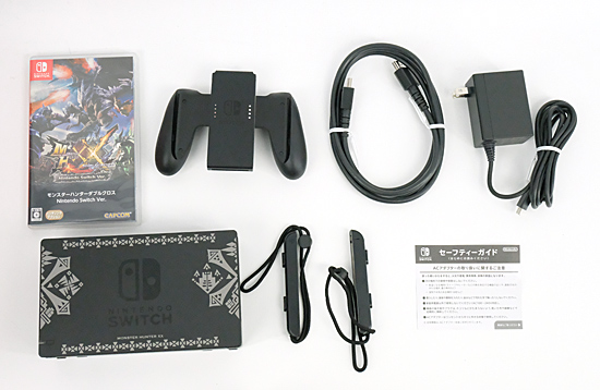 特別デザインの本体とドックを含む本体一式にパッケージ版「モンスターハンターダブルクロス Nintendo Switch Ver.」を付属。