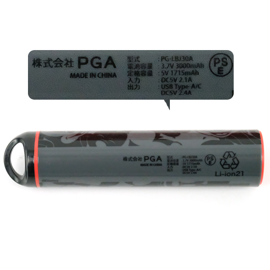 「PG-DLBJ30A01MKY」は、ディズニーキャラクターデザインの軽量コンパクトでポーチにも収まるスティック型モバイルバッテリー 3000mAhです。USB type-A/Type-Cポートでの出力対応・2台同時充電も可能です。また、スマートフォン本体を充電しながらモバイルバッテリーも充電できるパススルー充電に対応しています。お手持ちのストラップを付けて落下を防止できる便利なストラップホール付き。充電済みですぐ使える。(※満充電ではありません。)PSE適合商品。