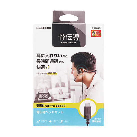 長時間のWeb会議やビデオ通話でも耳が痛くなりにくい、オープンイヤータイプの骨伝導有線ヘッドセットです。耳を塞がないため開放感があり、快適な装着感を保ちます。ペアリング・充電いらずの有線タイプで、パソコンやタブレットに挿してすぐに使用できます。