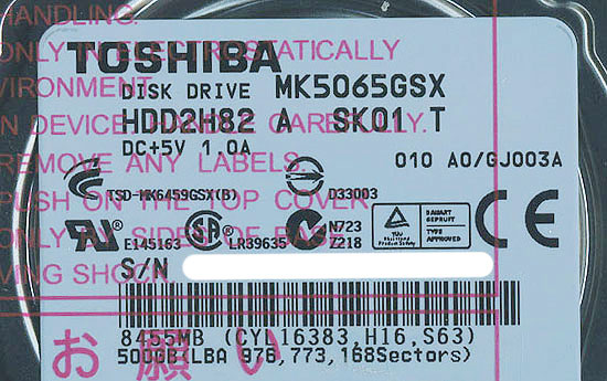 TOSHIBA(東芝) ノート用HDD 2.5inch★MK5065GSX★500GB★未開封
