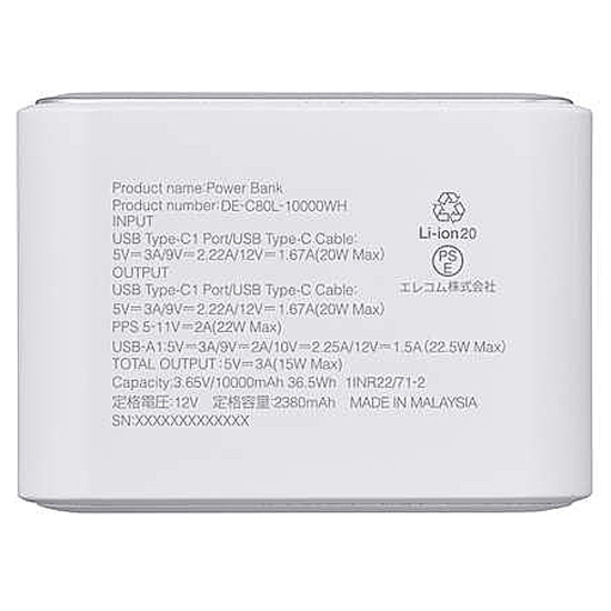 出力 USB-Cポート/ケーブル:最大12V/1.67A/PPS:5-11V/2A/USB-A:最大12V/1.5A/複数ポート同時:5V/3A