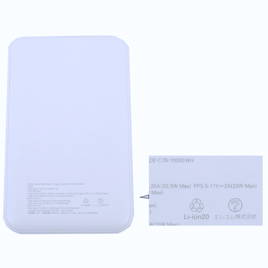 出力 USB-C1/C2:最大10V/2.25A/PPS:5-11V/2A/USB-A:最大10V/2.25A/複数ポート同時:5V/3A