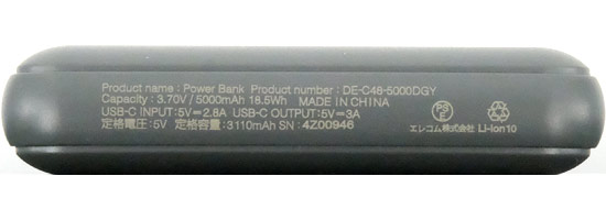 超コンパクトモバイルバッテリー(5000mAh/3A/USB Type-C×1)